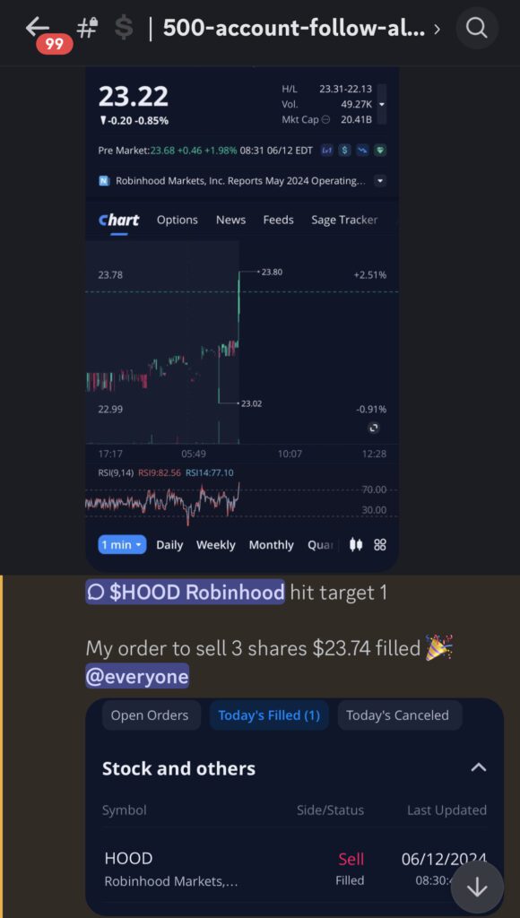 $HOOD I secured 3/4 shares at Target 1 for 13.6%. Leaving one share as a “moon runner” for Target 2+, with stop loss at break even $20.90.