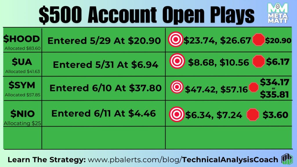 We are still in $SYM, $NIO and $UA with our full positions. For $HOOD I have 1 out of 4 shares left for target 2.