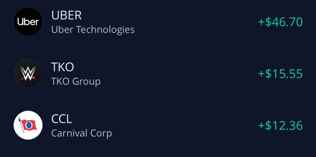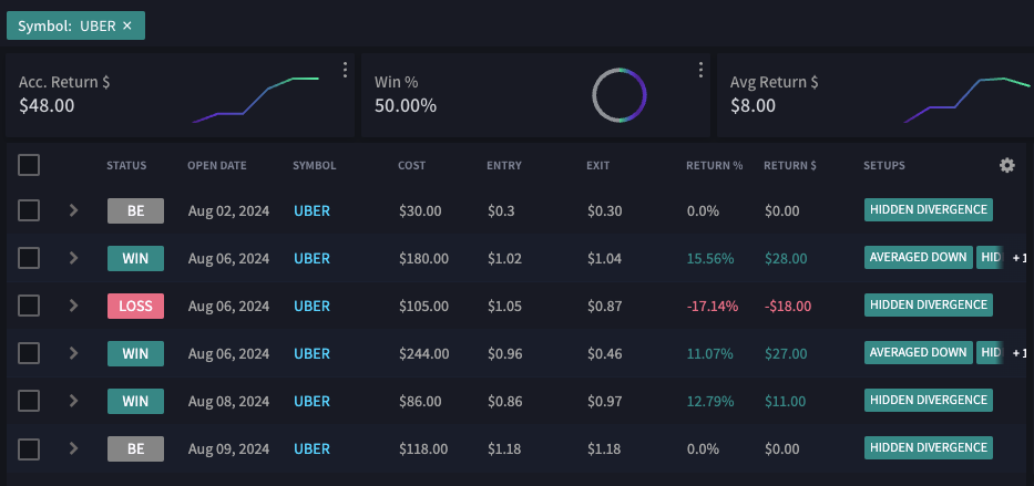 As we can see below, I am in the green on $UBER. We have 3 wins, 1 loss and 2 breakevens.