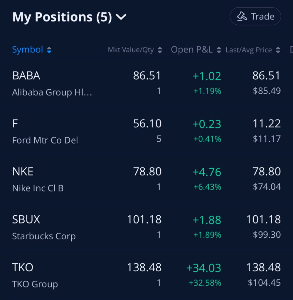 I took a month break from trading this account, only holding my $TKO position. In October in a random turn of events I got $120ish worth of free stocks from a Webull Promotion. I ended up selling all of the free stocks.
