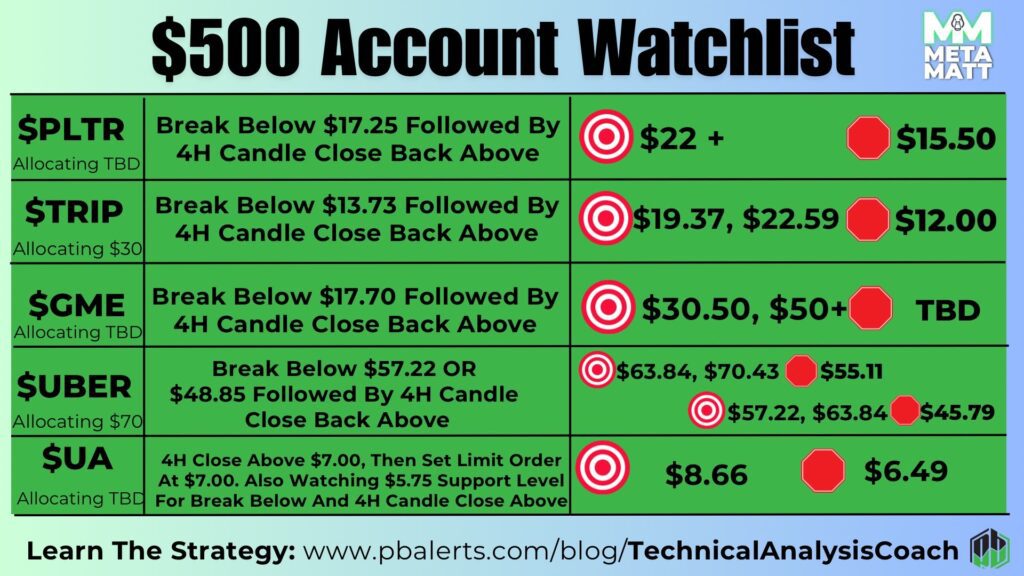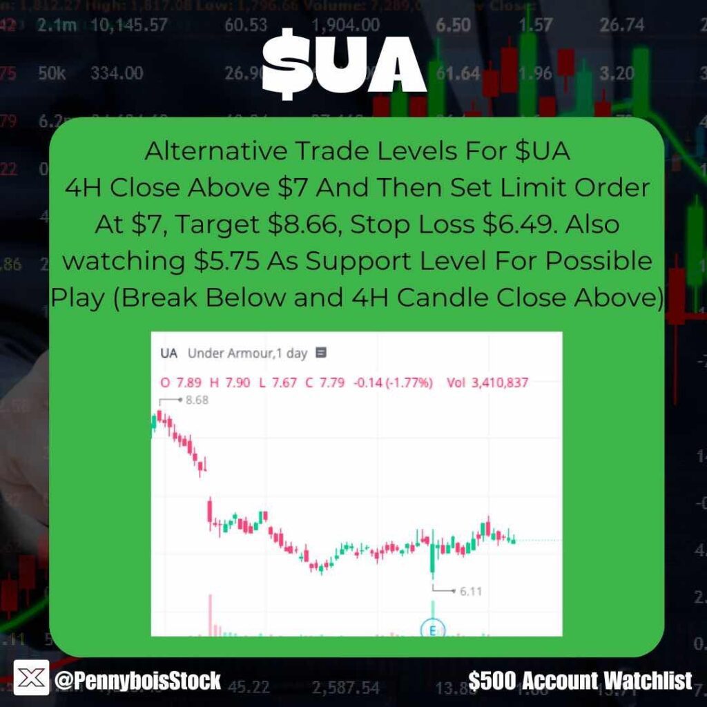 We have some other ways of playing this if we want to re-enter $UA. We don't want to force any trades or revenge trade here. Even though we stopped out, we did it via our plan and followed it perfectly.