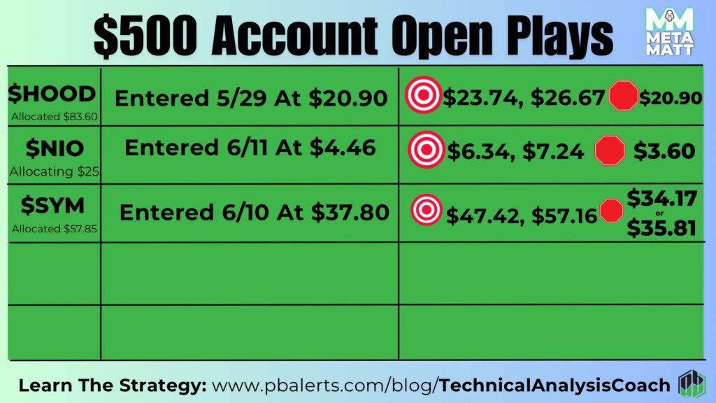 As you can see we are up on our $500 account, and all we had to do so far is make 4 buys so far and 2 sells, that's it!! The best part about this, is that because we set alarms on our brokers when our price levels or interest are hit, we don't have to stare at the phone all day to trade these plays!