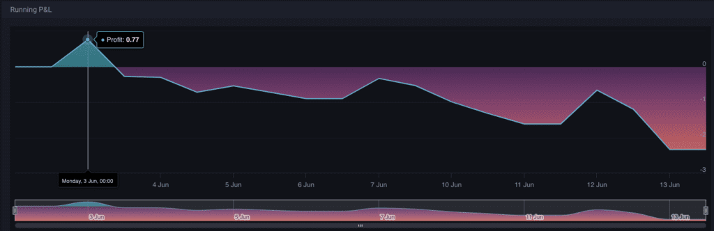 We had a 4H close below $6.63, so we decided to cut this one early to limit our overall risk. Our original stop loss was $6.17, but upon reassesing the market, our trades, and our portfolio we decided to move up to the stop loss (see the video above) to a 4H candle close below $6.63.