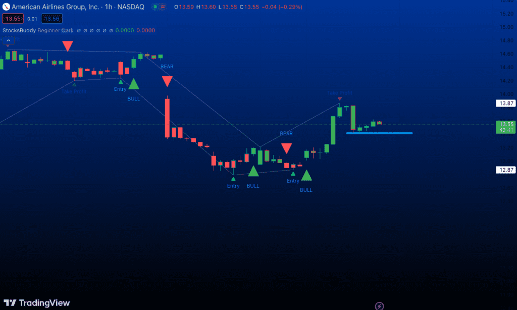 - Our custom indicator StocksBuddy is showing Bullish Signals on all the higher timeframes up until 45-minutes and lower, which are Bearish Signals.