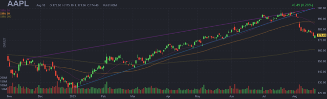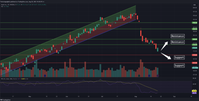 - But what if you're leaning towards the bearish side? If AAPL stock chart doesn't hold above $170, it might be time to enter a short position. Set your stop loss above $171.50, stay vigilant, and target $165 and beyond.