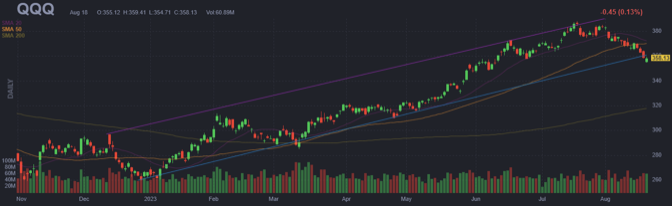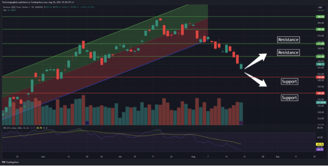 - But, if QQQ falters and doesn't hold that $350 support level, there might be a short play in the cards. Enter cautiously and set your stop loss above $353. Target prices? $340 and beyond.