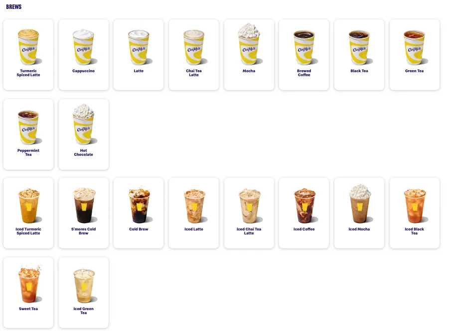 Some of the coffee drinks include a Churros Frappe and Smores Cold Brew. You can top those with toffee sprinkles and can spice them up with a variety of syrups and espresso shots.