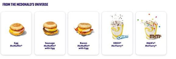 McDonald’s famous Vanilla Ice Cream Cone will be on the CosMc’s menu as well as Chocolate and Twist options. They also have the McDonald’s Egg McMuffins and McFlurry.