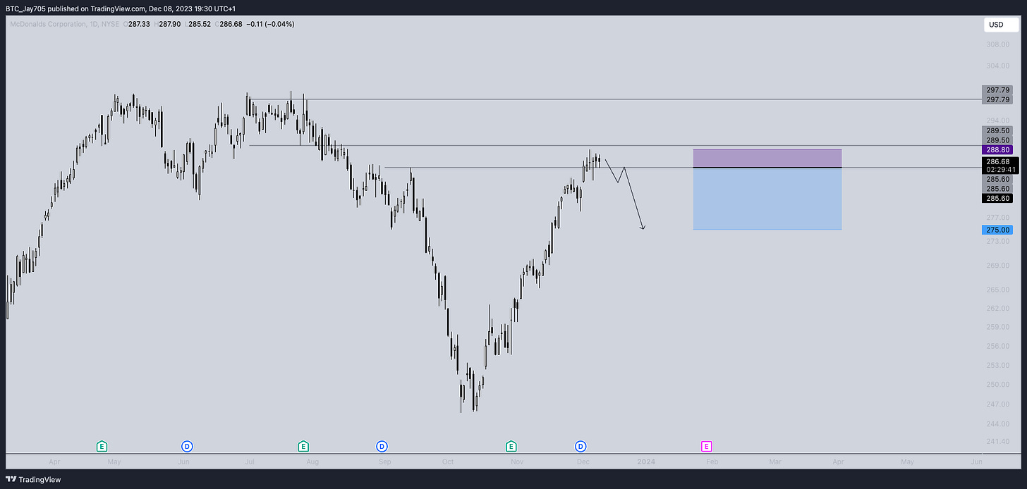 If the price breaks down below $285.60 we are looking to short this with targets at $281.85 and $275 with a stop loss at $288.80. Click Here For More Trade Ideas