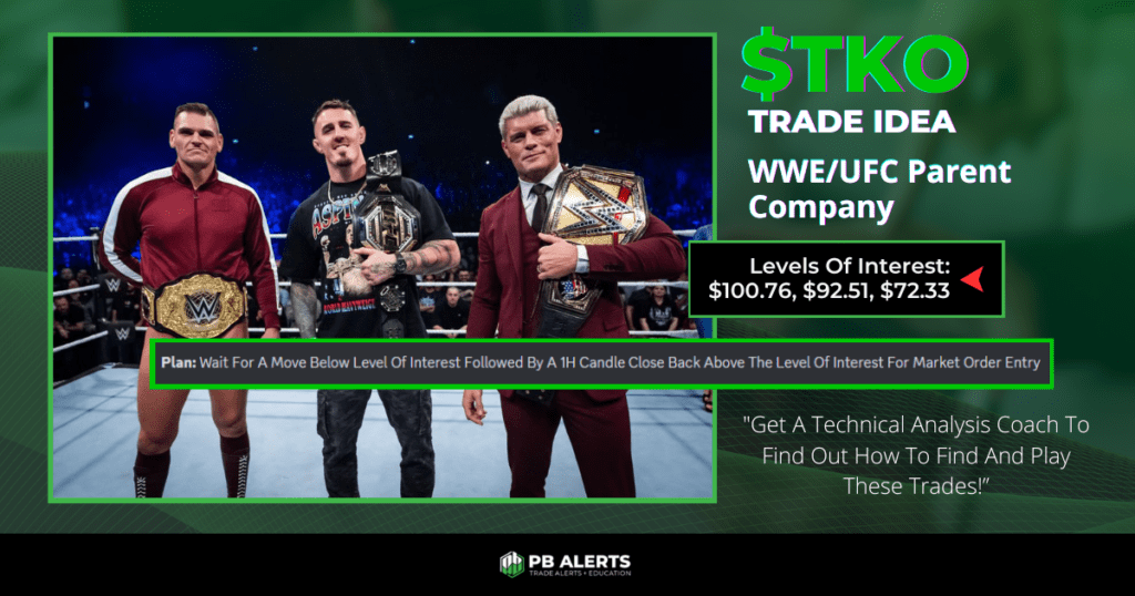 Our Technical Analysis Coach Jay has a trade idea for $TKO!! He is watching $100,76, $92.51 and $72.33. He is waiting for a move below one of these levels followed by a 1H Candle close back above the level for an entry!! Make sure to check out the discord to see where his stop losses and targets are!!