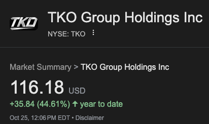 Keep in mind Ari Emanuel is the CEO of both TKO Group and Endeavor. The price of $TKO dropped by almost $10 per share after this news was announced, as a lot of analysts said this wasn't a smart business move on TKO's part, some calling it a "favor to Endeavor".