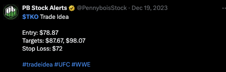 I personally (Meta Matt) am still bullish long term on $TKO, and am still holding my position with a $104 average. WWE's Monday Night Raw is moving to Netflix in 2025, TKO just announced a dividend program, and UFC is becoming more and more mainstream!! I'm still personally holding at these levels long and strong!!!