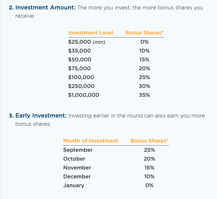 Boxabl plans on going public in the future via an IPO, SPAC, or direct listing. Investors interested in buying private share of Boxabl pre-IPO must invest a minimum of $25,000. They will receive shares at $0.80 per share, and receive two warrants. A warrant grants the holder the right to purchase additional shares at $0.80 at a future date. The warrants can be exercised within a three-year period, or can be called in by the company with a 30-day notice. If you hold Boxabl shares you are also eligible for a percentage of the bonus shares. Early investors also got a bonus share % based off of how early they invested.