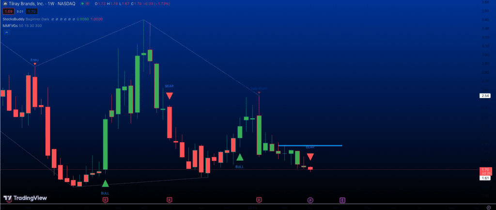We are watching to enter a short position if $TLRY breaks below $1.50 (or retest as resistance). We are also watching $1.97 as an area for a bullish play, if we get a break above followed by a retest as support. Stop Losses and Targets for these ones can be based on your personal Risk:Reward.