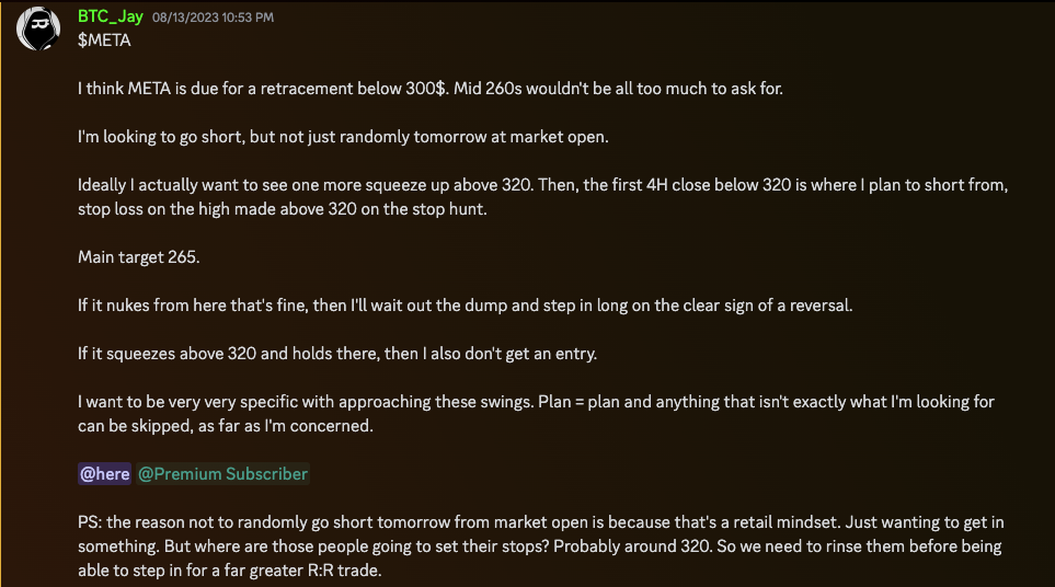 Overall we are bullish on META, but we are playing a retracement down in the overall uptrend, so take your entry carefully!!