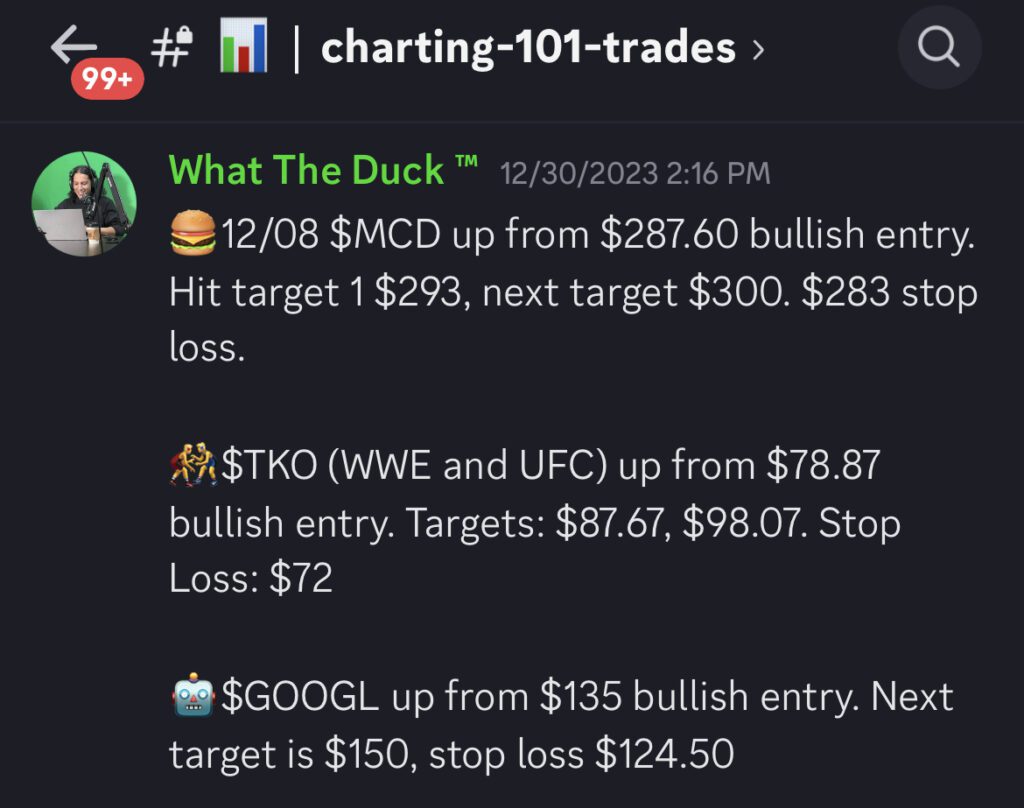 We find and play these trades using a Technical Analysis Strategy that we teach as part of our 8 Class Charting 101 Course. Every Thursday at 5PM EST we go over all these trades live in our discord!! We also update when these trades hit entry, targets and stop losses in an exclusive channel in the discord!! This channel, stream and educational course is all included with our premium membership. However, we also post all the trades right here on our Free Trading Blog and Twitter.